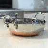 A traditional stainless steal Balti dish with a copper base. An elegant dish for serving Balti curry dishes or any authentic Indian dishes for the perfect presentation. Not suitable to use over cooking flames.