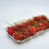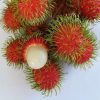 Rambutan is an exotic tropical fruit native to southeast Asia characterized by its hairy, red or green skin and a sweet, slightly tart, juicy flesh. It’s known for its unique appearance and flavor, often compared to a cross between a lychee and a grape.